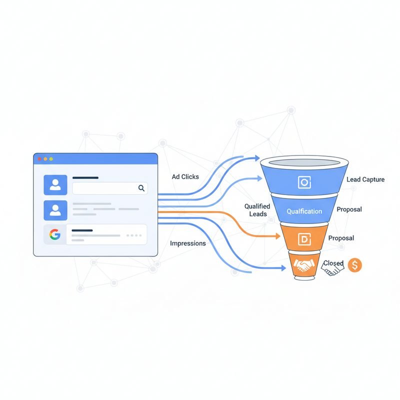 Você faz Google Ads. Chegam leads. O time comercial reclama que “só vêm curiosos”. Você aperta palavra-chave, muda anúncio, ajusta lance… e a sensação é